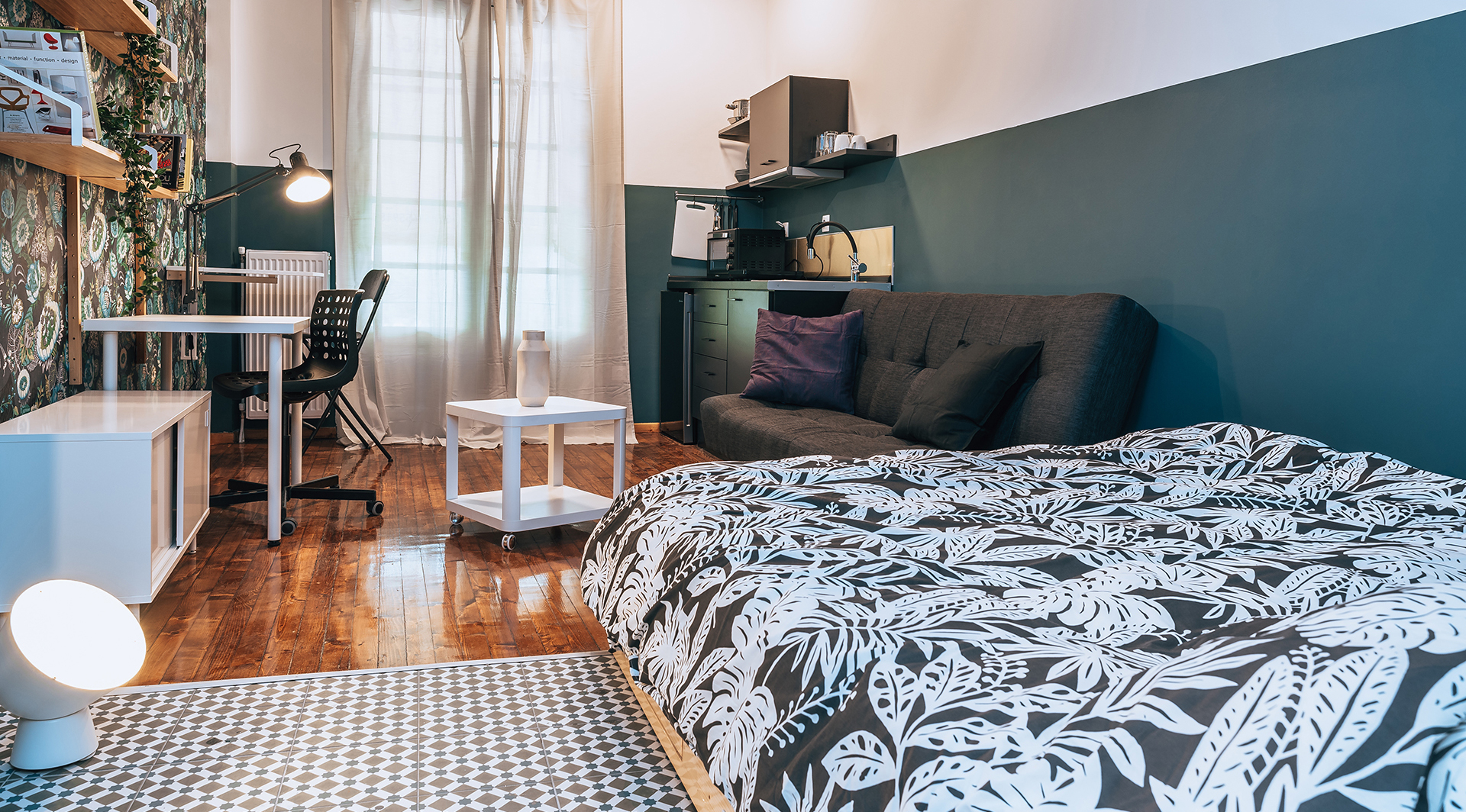 Το URBAN_S περιμένει να φιλοξενήσει έναν φοιτητή, έναν backpacker ή και ένα ζευγάρι. Συνδιάζει αρμονικά τις ανέσεις ενός απόλυτα εξοπλισμένου studio με ένα διπλό κρεββάτι, καναπέ που ανοίγει, χώρο εργασιας καθώς και μια πλήρως εξοπλισμένη κουζίνα. Διαθέτουν όλα πρόσβαση σε ένα όμορφο ιδιωτικό μπαλκόνι, και αποπνέουν την αίσθηση ενός χώρου οικείου και παράλληλα καλαίσθητου. Ο φυσικός φωτισμός, το ξύλινο δάπεδο, οι μοντέρνες ταπετσαρίες και τα ιδιαίτερα αρχιτεκτονικά στοιχεία του Urban-S υπόσχονται μια αξέχαστη εμπειρία διαμονής.