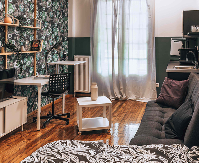 Το URBAN_S περιμένει να φιλοξενήσει έναν φοιτητή, έναν backpacker ή και ένα ζευγάρι. Συνδιάζει αρμονικά τις ανέσεις ενός απόλυτα εξοπλισμένου studio με ένα διπλό κρεββάτι, καναπέ που ανοίγει, χώρο εργασιας καθώς και μια πλήρως εξοπλισμένη κουζίνα. Διαθέτουν όλα πρόσβαση σε ένα όμορφο ιδιωτικό μπαλκόνι, και αποπνέουν την αίσθηση ενός χώρου οικείου και παράλληλα καλαίσθητου. Ο φυσικός φωτισμός, το ξύλινο δάπεδο, οι μοντέρνες ταπετσαρίες και τα ιδιαίτερα αρχιτεκτονικά στοιχεία του Urban-S υπόσχονται μια αξέχαστη εμπειρία διαμονής.